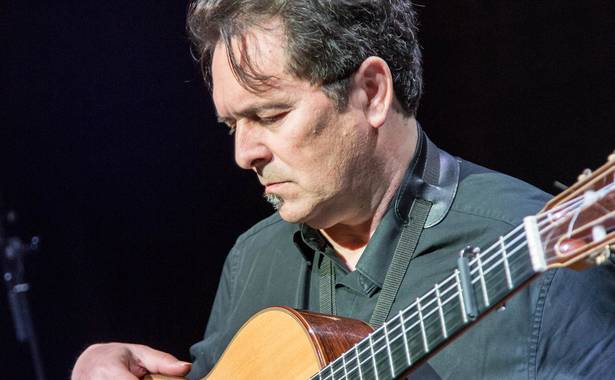 Außerdem gehört ins klassische Set eines Fado-Trios eine Konzertgitarre mit 6 oder 12 Saiten und einem runden Schallloch. Wahrscheinlich kam sie schon Mitte des 19. Jahrhunderts von Spanien nach Portugal (der Weg war ja nicht weit), sie war also schon anwesend, als der Fado Fahrt aufnahm. Die Gitarre spielt niemals ein Solo, sondern sie unterstützt das Rhythmus-Muster als soliden Hintergrund, gegen den Sänger und die portugiesische Gitarre performen. Klassischerweise wird sie vor dem Körper gehalten und gezupft, bei uns von Antonio de Brito.
