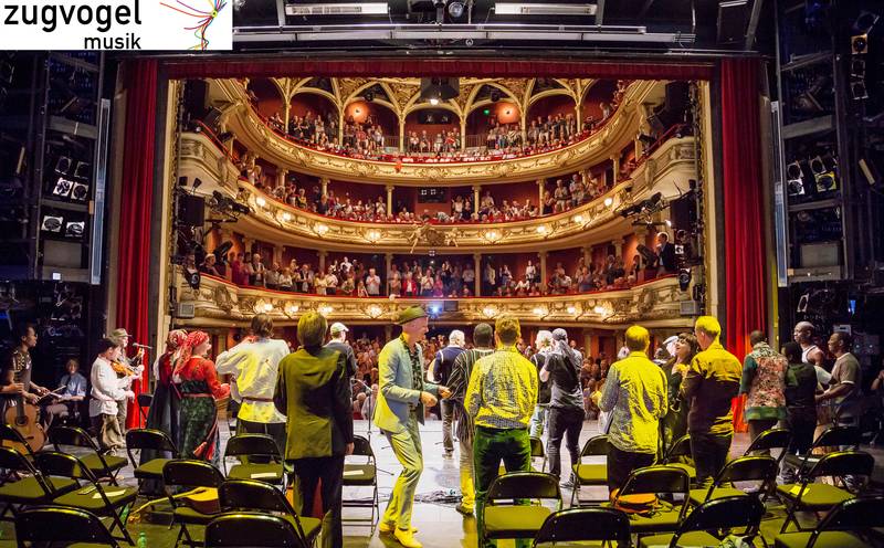 Ende August gingen die Heimatlieder in die Natur, genauer gesagt: ins Wattenmeer.  Mit der Zugvogelmusik lieferten wir den Auftakt zu den Zugvogeltagen, die jährlich den Abflug tausender Zugvögel aus dem niedersächsischen Wattenmeer bekannt machen, um die Menschen für ein Naturschauspiel ganz besonderer Art zu gewinnen. Beim Konzert im restlos ausverkauften Oldenburgischen Staatstheater gab es nicht nur zum großen Finale (Foto oben: Melanie Stegemann), sondern bereits vor der Pause Standing Ovations beim Auftritt von Njamy Sitson. Es gab nicht nur Musik vom Heimatlieder-Ensemble wie Polynushka, sondern auch ganz neue Künstler aus Oldenburg, dem Kongo und Island, und die Nordwest Zeitung schrieb: "Jeder einzelne Künstler war herausragend". Das Projekt, bei dem Künstler aus den Ländern des Vogelzugs auftraten und jeweils einen Zugvogel präsentierten, entstand in Kooperation mit dem Nationalpark Niedersächsisches Wattenmeer. Die Zugvogelmusik hat übrigens einen eigenen YouTube-Kanal.